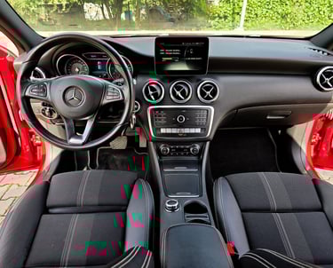 Jest całkiem fajnie. Oczywiście nie ma pakietu AMG ale auto jest pod tym kątem przyzwoite - czujniki przód i tył + kamera cofania, fajne światła, tempomat, android auto itd. Kompletną listę wyposażenia mogę podesłać w pdf.